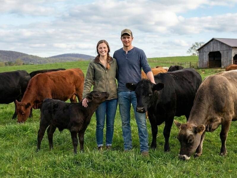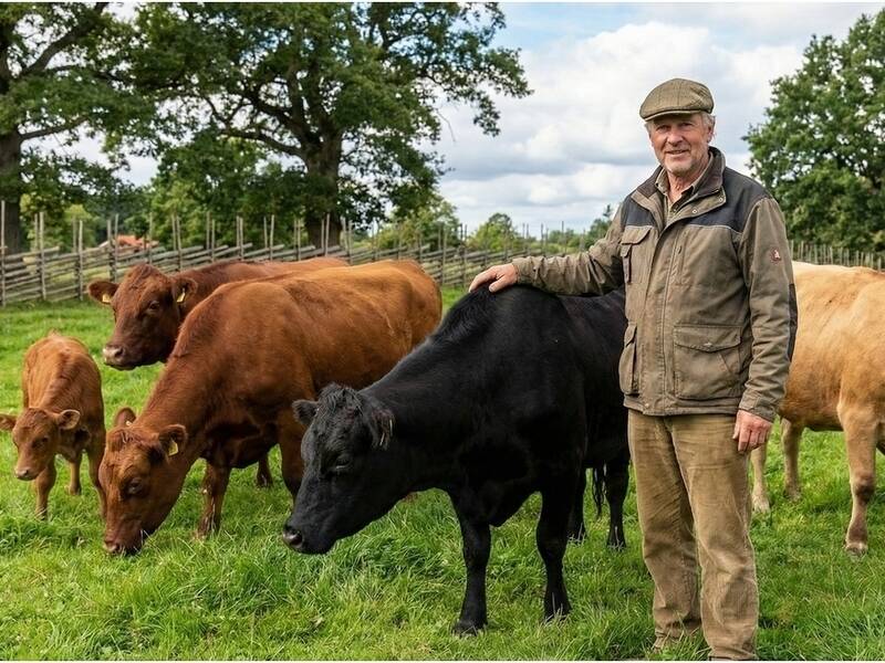 "Auf dem „Hof am Eschenhain“ leben Lukas und Sarah ihren Traum. Ihr ganzer Stolz: Eine bunte Dexter-Herde. „Wir lieben die Vielfalt und den robusten Charakter dieser kleinen Rinder“, erklärt Sarah, während ein Kälbchen neugierig an ihrer Jacke schnuppert. Zwischen schwarzen, roten und dun-farbenen Tieren herrscht hier pure Idylle. Das Paar setzt konsequent auf ganzjährige Freilandhaltung. „Sie sind perfekt an das Leben draußen angepasst“, ergänzt Lukas. Das Ergebnis ist Fleisch von höchster Reinheit und Geschmack."